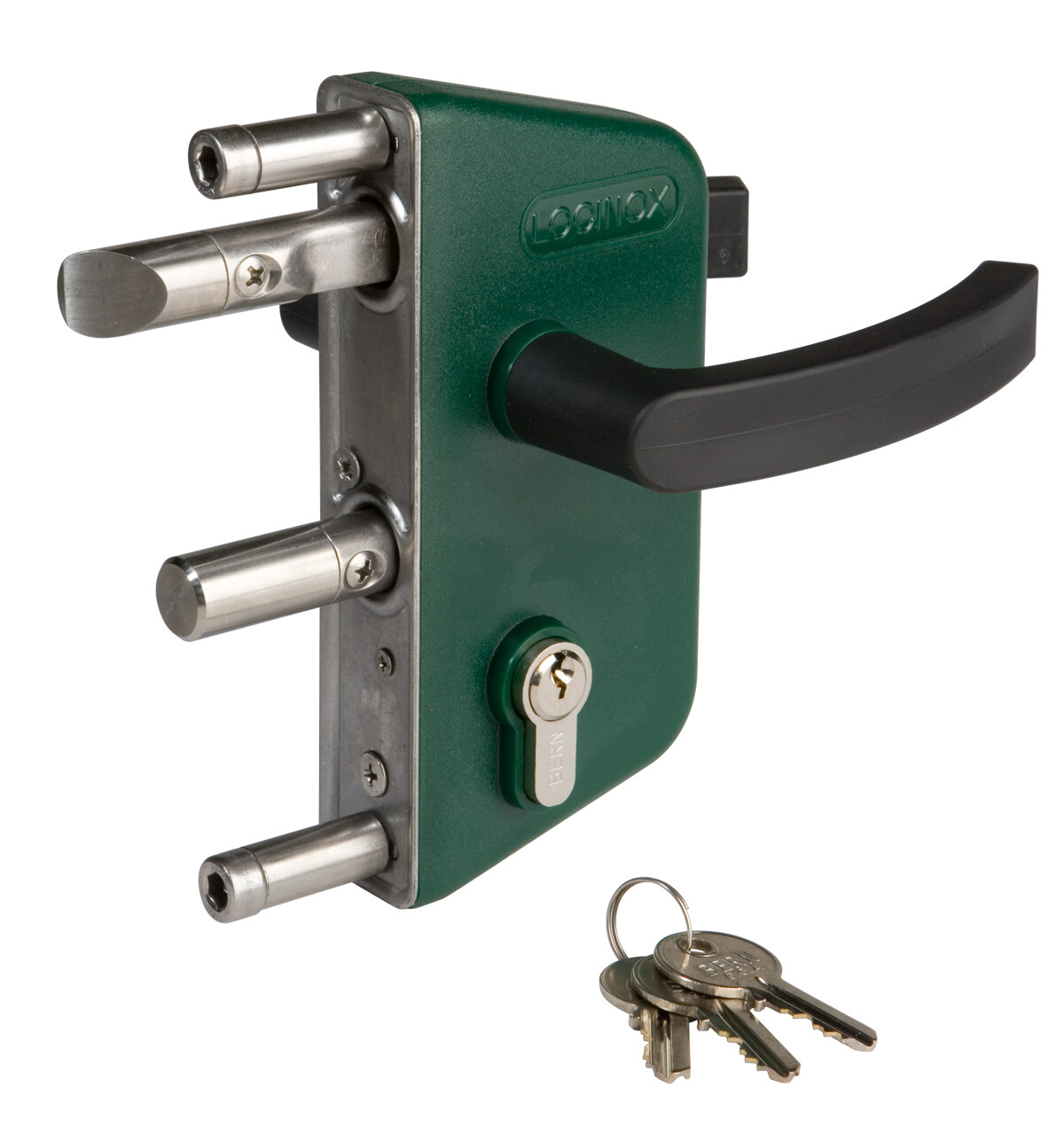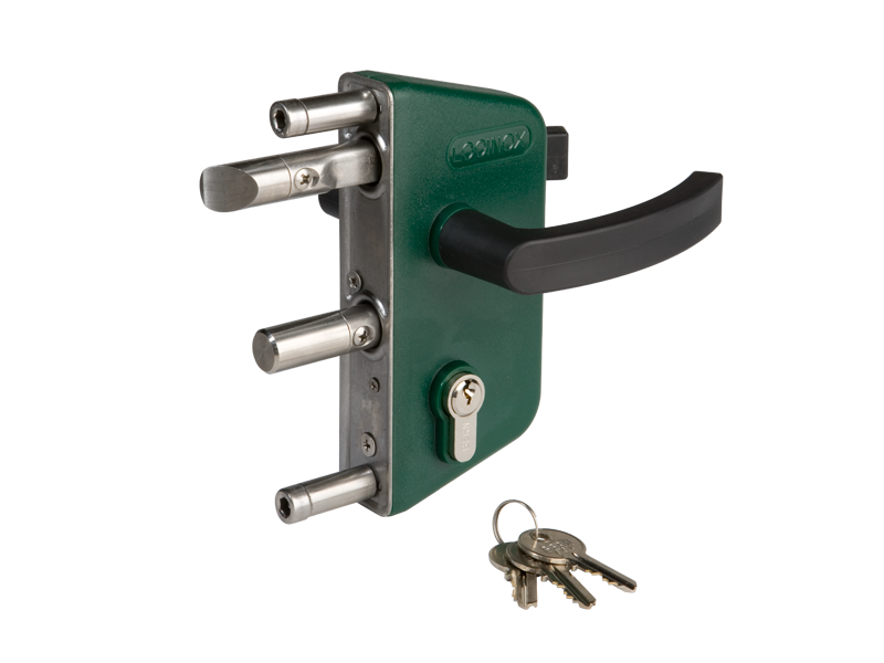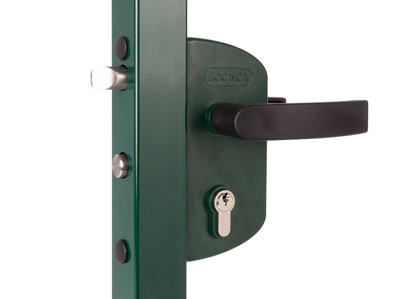 Economical garden walk gate lock with polyamide housing and non-adjustable stainless steel mechanism. This lock is recommended for all your small gates and for residential gates where price is a driving issue. A stainless steel throw of 7/8" guarantees secure locking. Ships standard with the black poly handle pair. The latch gap required is keep dependent, but the SMKL polyamide keep requires a 1-1/8" latch gap.