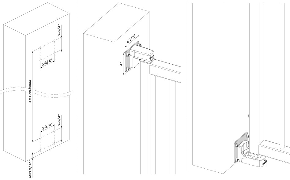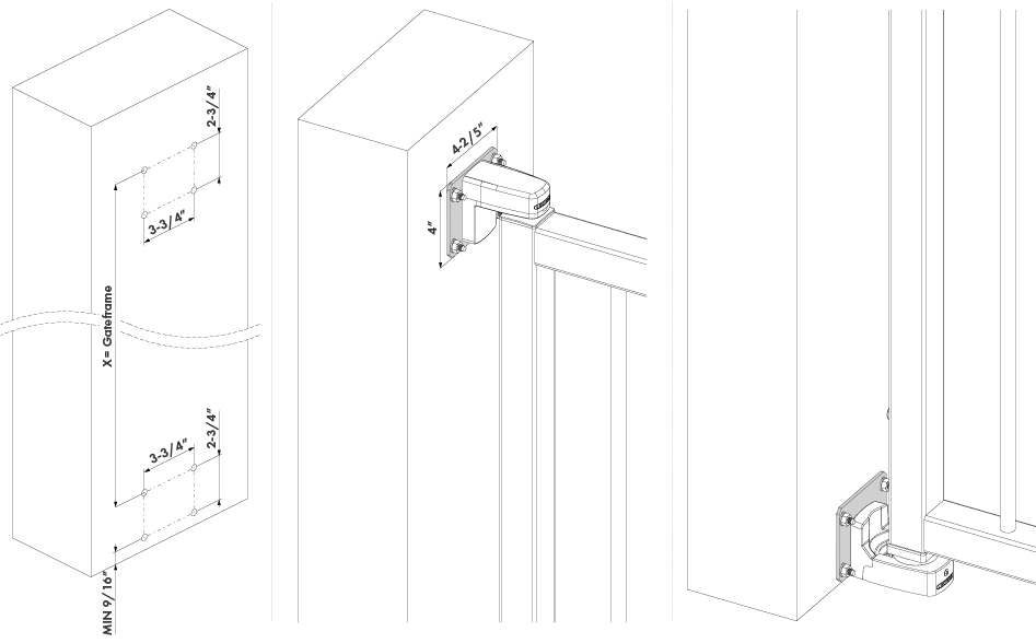 Optional set to fix the Interio gate closer directly on the wall. This set consists of two wall plates made of hot-dip galvanized steel. All fixations are included.